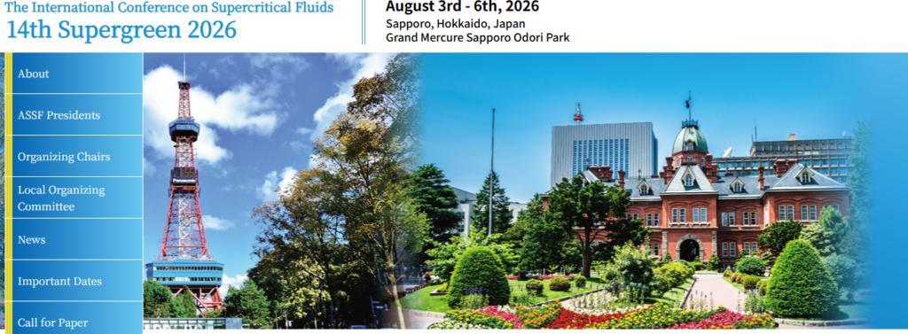 On behalf of the Asian Society for Supercritical Fluids, we are delighted to invite you to participate in the international conference on supercritical fluids, “14th Supergreen 2026,” to be held in the beautiful city of Sapporo, Japan, from August 3 to 6, 2026.